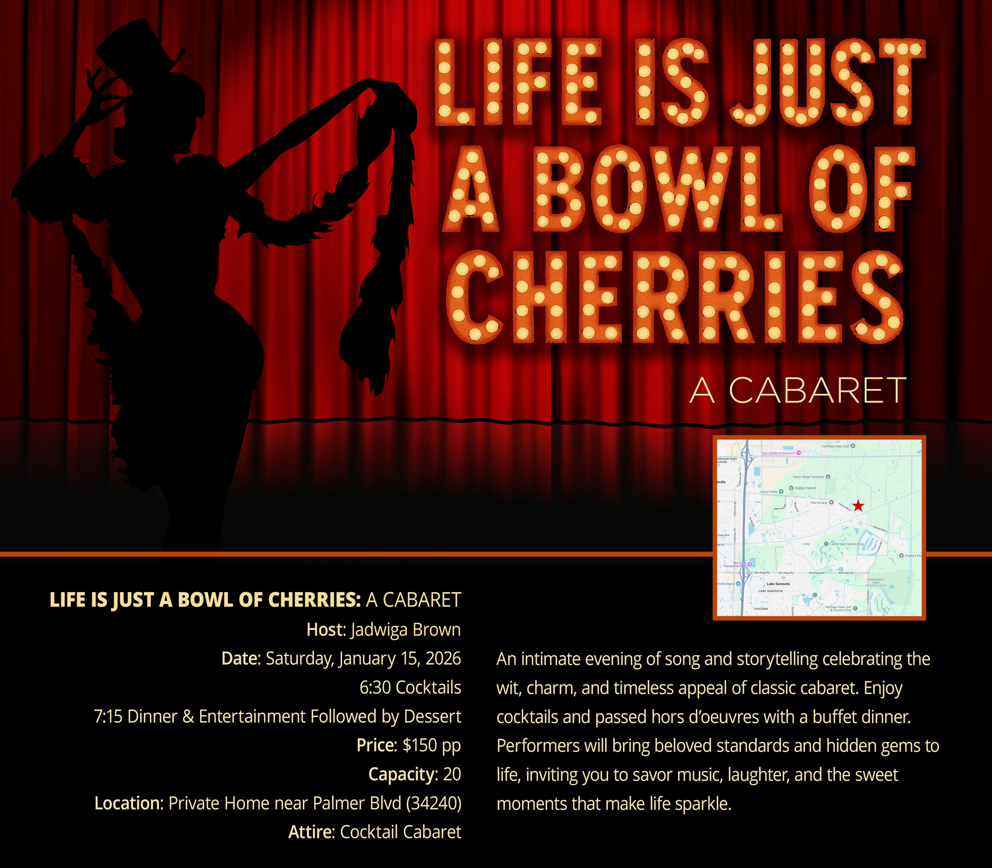 Sarasota Opera is pleased to offer our community a friend-raiser favorite - Mini Events. Mini Events are hosted by individuals at special locations with a variety of entertaining themes. Each event is generally limited to under 50 people and priced to attract anyone wanting to meet new people and participate in these unique experiences, all while supporting Sarasota Opera! We hope you join us at one or more of these fun experiences! (Scroll down to learn more about becoming a host.)